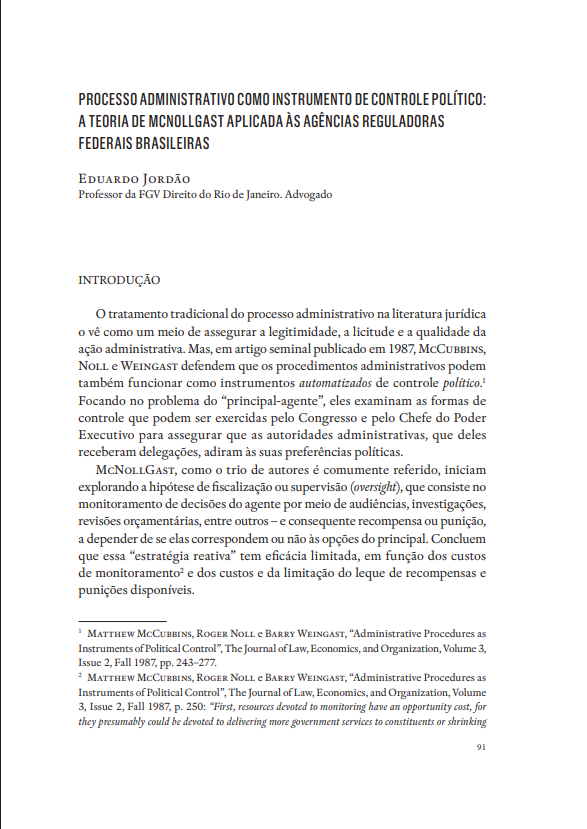 Processo administrativo como instrumento de controle político: a Teoria de Mcnollgast aplicada às agências reguladoras federais brasileiras