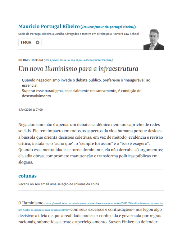 Um novo Iluminismo para a infraestrutura (Folha de S. Paulo, 04 de fevereiro de 2026)