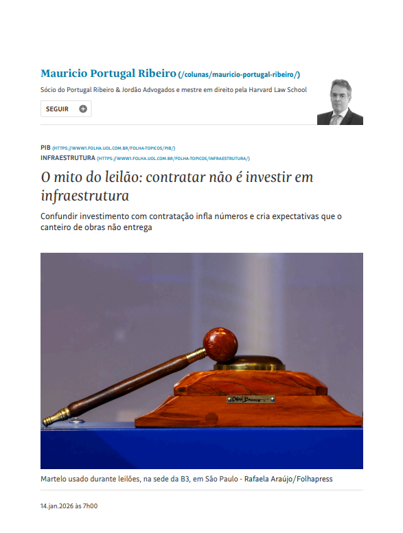 O mito do leilão: contratar não é investir em infraestrutura (Folha de S. Paulo, 14 de janeiro de 2026)