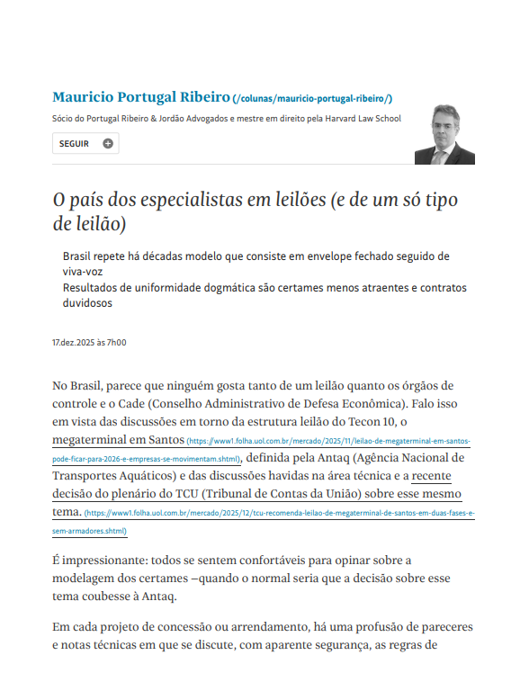 O país dos especialistas em leilões (e de um só tipo de leilão) (Folha de S. Paulo, 17 de dezembro)